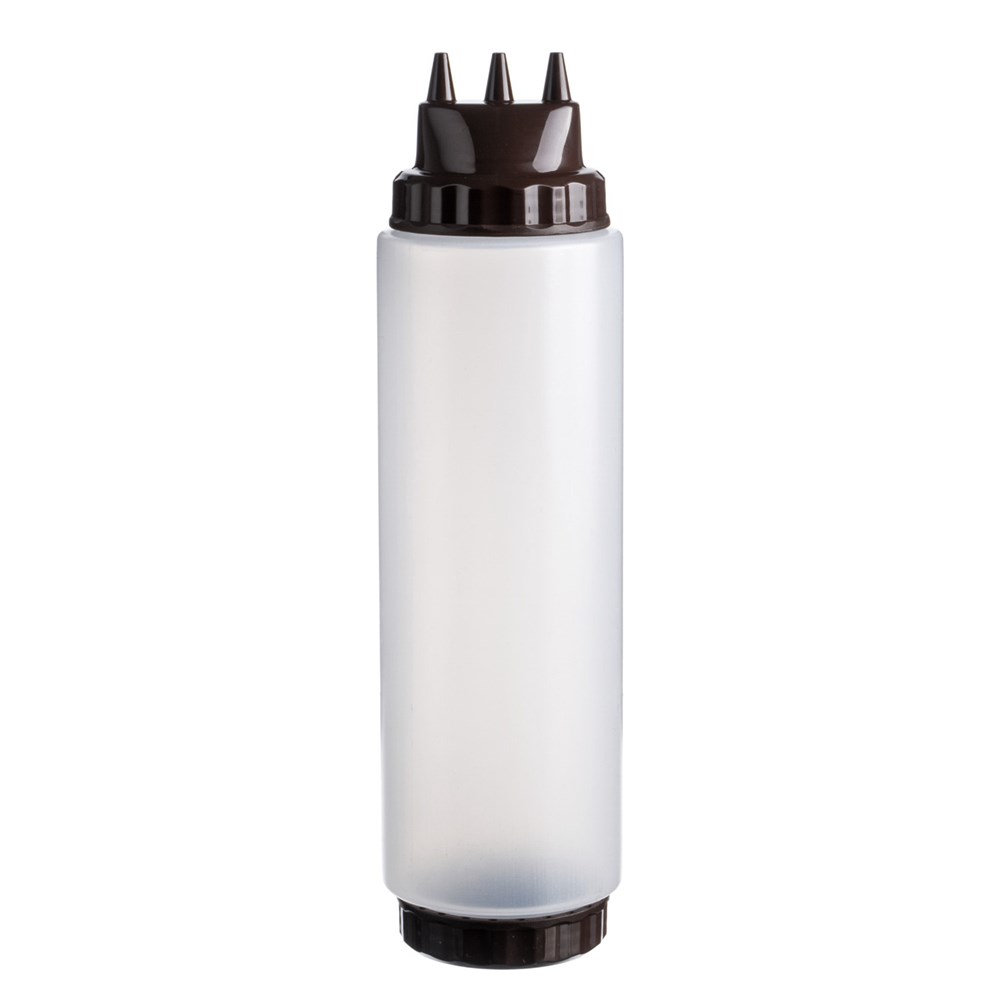 Емкость для соуса 1000 мл. d=75 мм. h=290 мм. c 2 крышками 3 носика прозрачная, крышки коричневые GP /1/96/