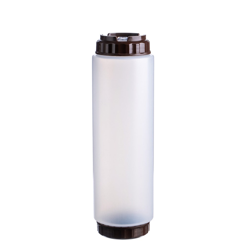 Емкость для соуса 1000 мл. d=75 мм. h=290 мм. c 2 крышками, с силик. носик. прозрачная, крышки коричневые GP /1/96/