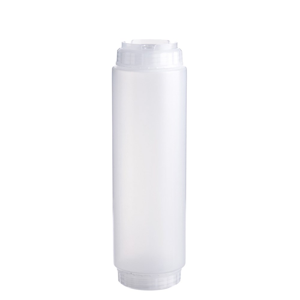 Емкость для соуса 1000 мл. d=75 мм. h=290 мм. c 2 крышками, с силик. носик. прозрачная, крышки прозрачные GP /1/96/