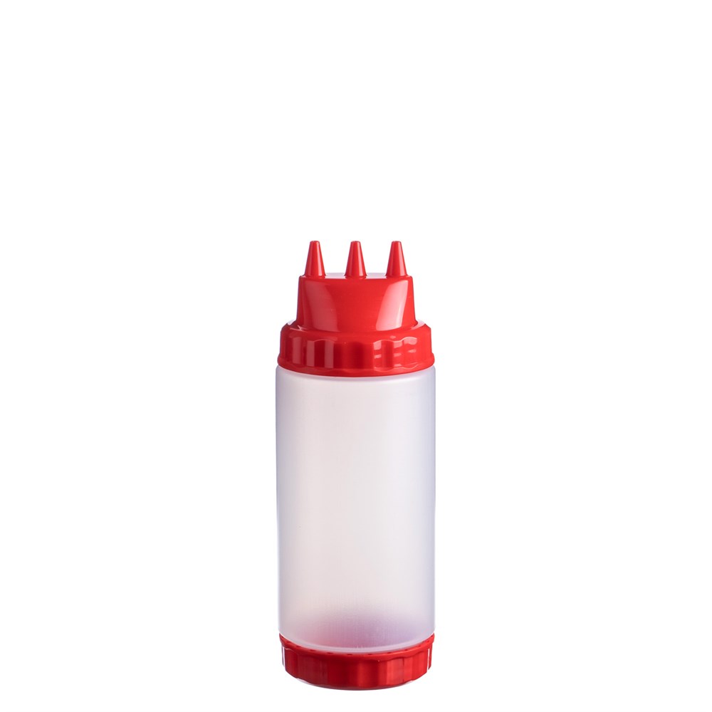 Емкость для соуса 500 мл. d=70 мм. h=200 мм. с 2 крышками 3 носика прозрачная, крышки красные GP /1/96/