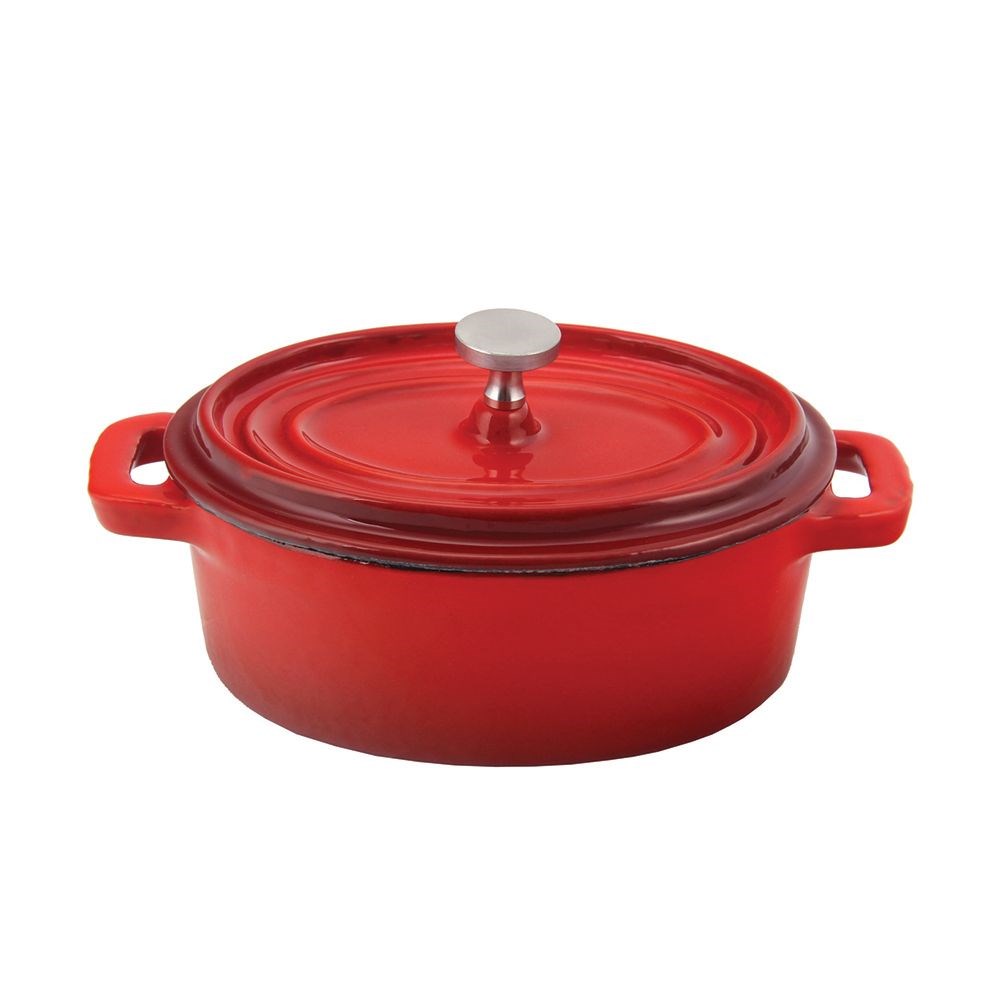 Кастрюля эмалированная с крышкой овальная красная 250 мл, 12 см, чугун, P.L. Proff Cuisine
