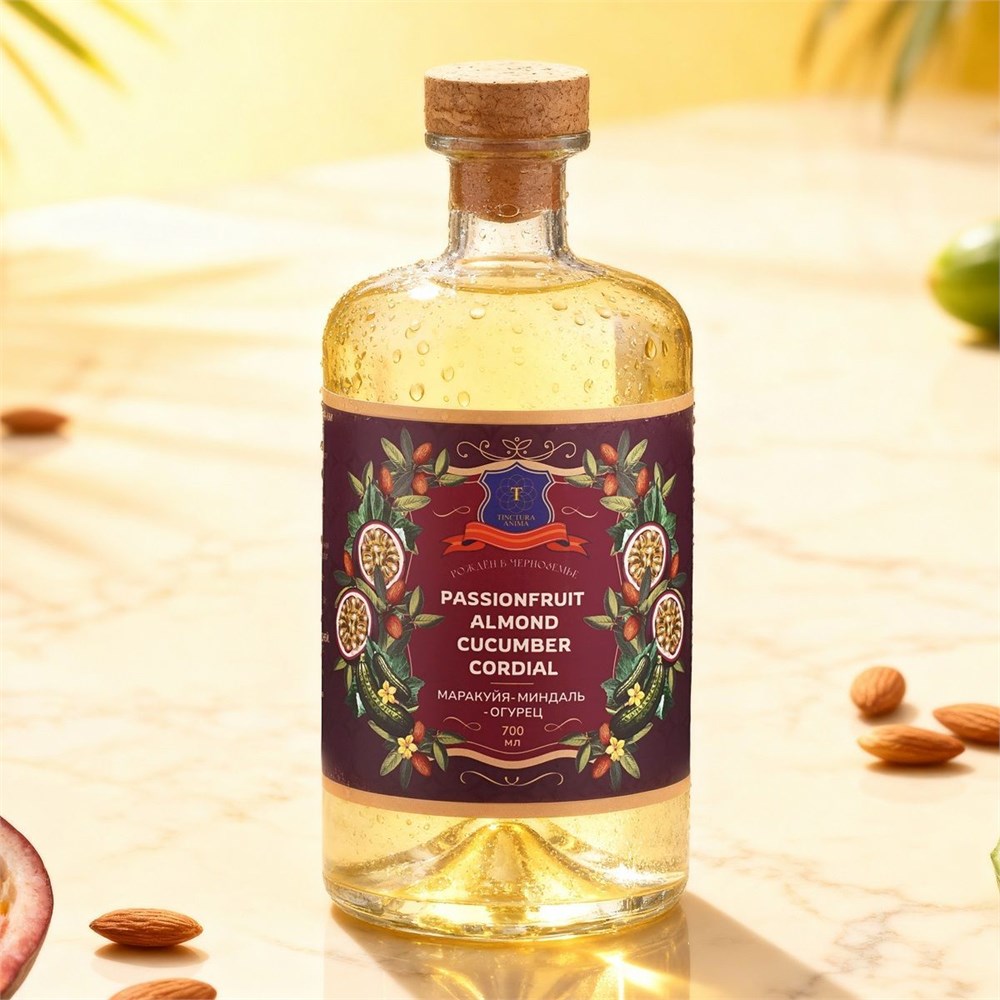 Напиток безалкогольный, КОРДИАЛ-МАРАКУЙЯ-МИНДАЛЬ-ОГУРЕЦ, бренд "Tinctura Anima", 700 мл.
