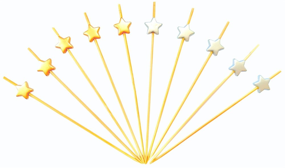 Шпажки Пика "Звезда"золото,серебро 7см, 100 шт, бамбук