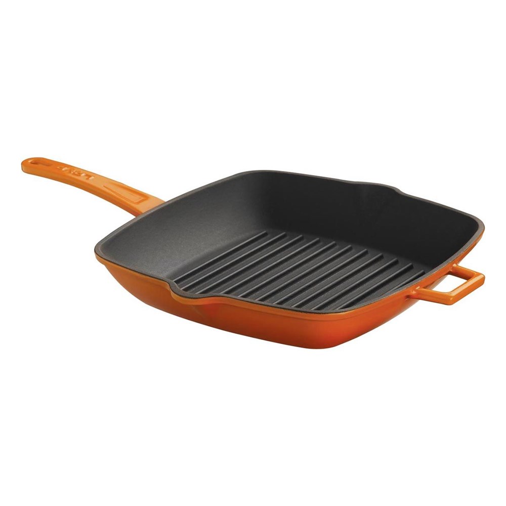 Сковорода-гриль чугун 26*26 эмаль оранжевая LAVA