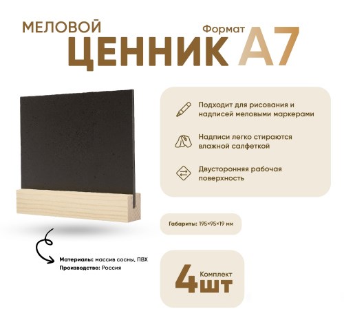 Табличка меловая А7 на дер.основ. 19х19 набор 4 шт [02FE0101]