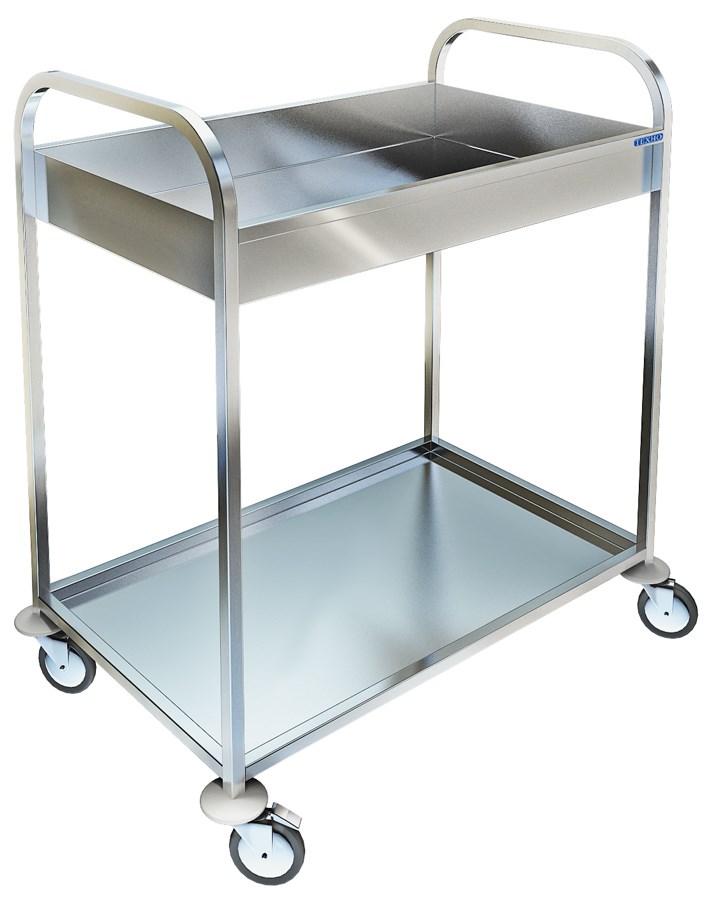 Комбинированная тележка ТП-221 служит одновременно для развоза и сбора посуды. Модель выполнена из качественной нержавеющей стали, имеет два уровня для складирования столовых приборов и посуды. Верхняя полка с высокими бортиками препятствует смещению содержимого при перевозке, гарантирует сохранность подаваемых напитков и блюд и целостность тарелок, стаканов, чашек.